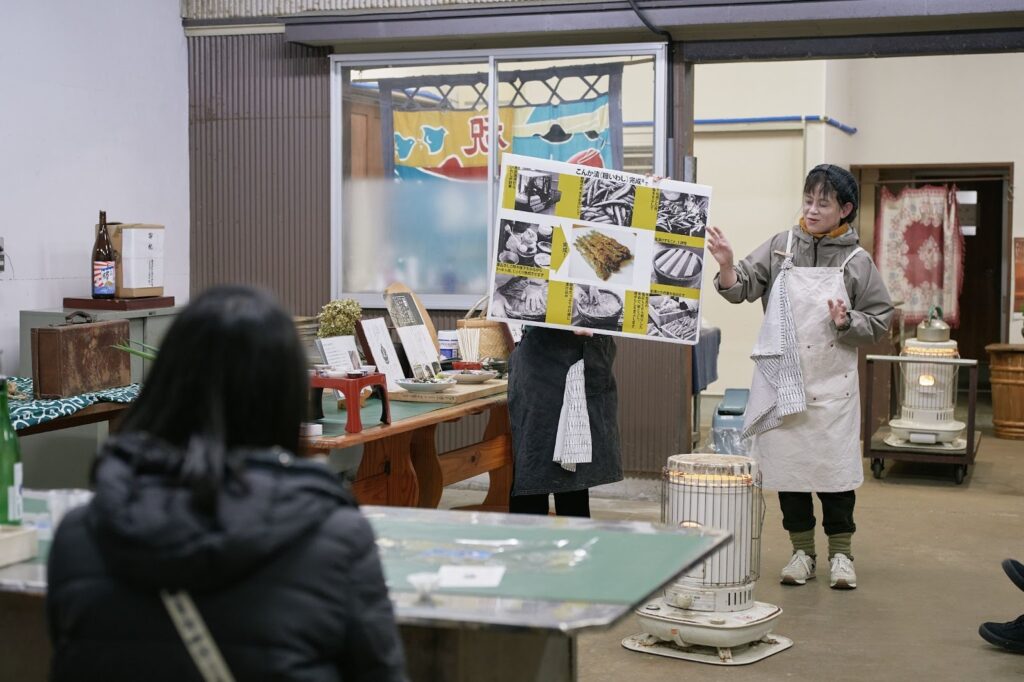 On the first day, the tour began with a tasting of “Welcome Sushi” served along the banks of the Shogawa River. Participants then enjoyed a nigiri sushi lunch prepared by sushi master Naruki Takimoto at the well-known Himi restaurant Naruki. This was followed by a lecture on konka iwashi, a type of fermented sushi, given by Sekiko Kakitani, representative of Kakita Suisan Ltd. in Himi.